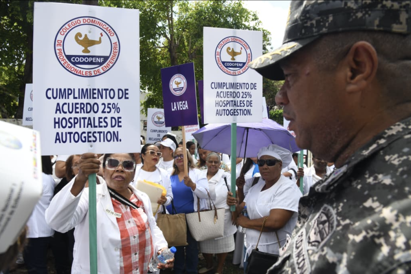Con sus uniformes y batas blancas, decenas de enfermeras protestaron este martes frente a la sede del Servicio Nacional de Salud (SNS), con el objetivo de presionar al Gobierno a cumplir lo acordado en noviembre de 2024 y a la fecha no han sido resueltos.
