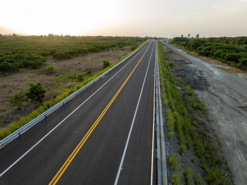 Estrella, explicó que esta carretera es una de las mas importantes del Sur, porque consta de 19.8 kilómetros de extensión y 17 puentes que la cruzan desde su inicio en Ojo de Agua, hacia el este donde empalma con la carretera Sánchez, hasta la comunidad de Galión, al Oeste, donde entra nuevamente a la carretera Sánchez.