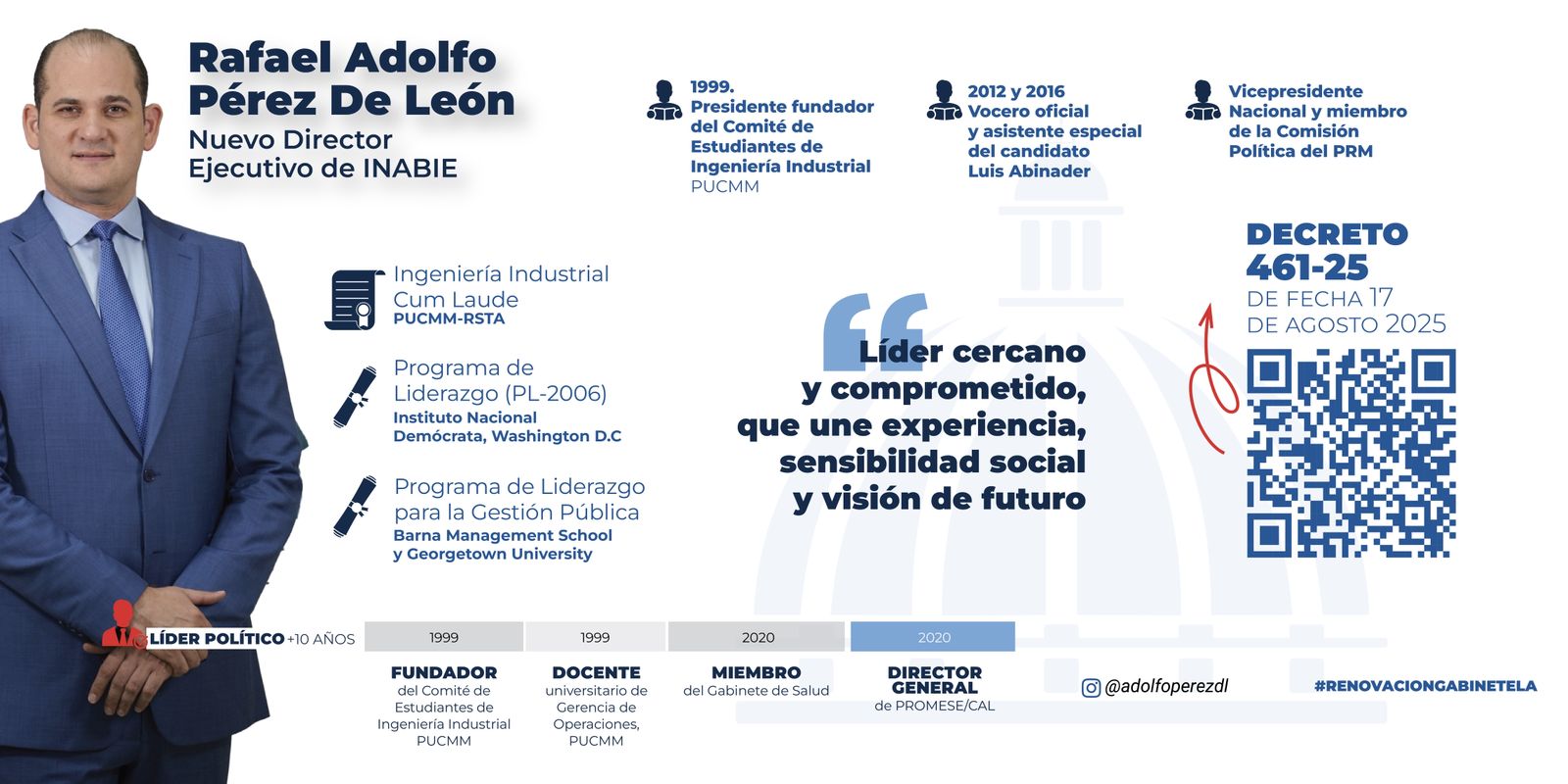 En lugar de Castro, quien ha estado en el centro del huracán por irregularices en la licitación para compra de calzados escolares, ha sido designado por el presidente Abinader Rafael Adolfo Pérez, como nuevo Director Ejecutivo de INABIE.