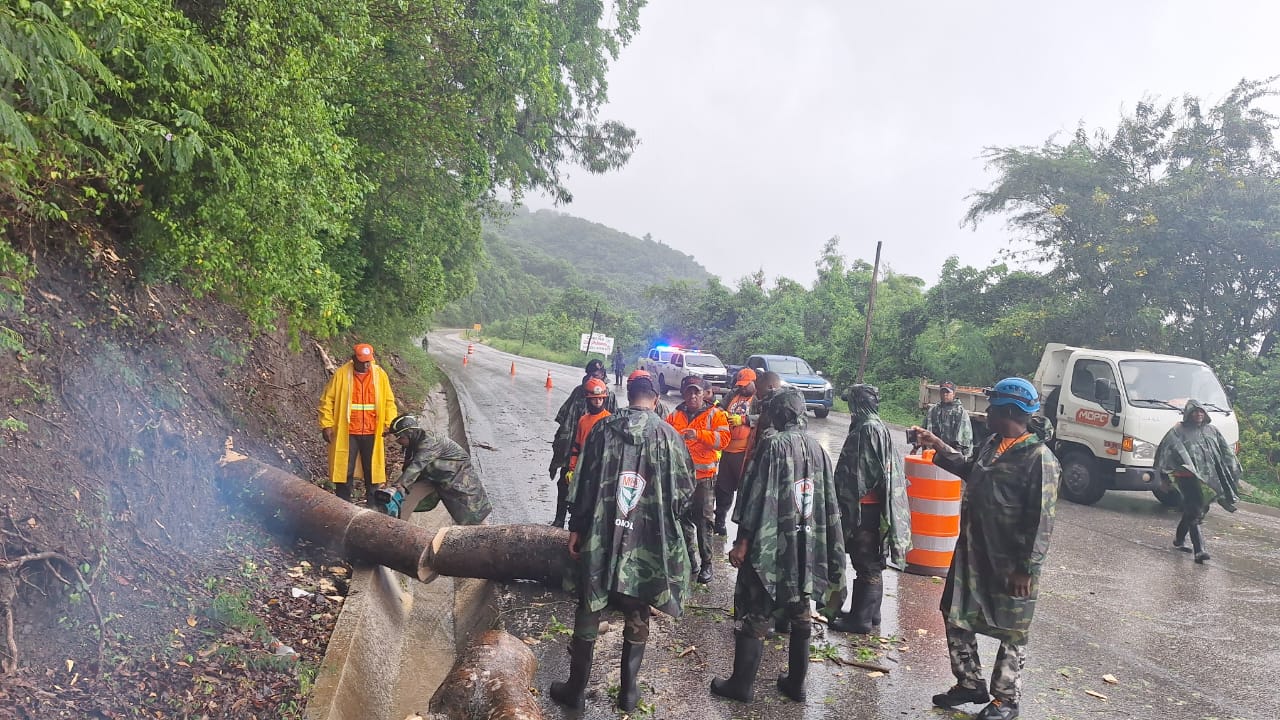 También, se reportaron caídas de árboles en la comunidad San Rafael, municipio Paraíso, por lo que voluntarios del organismo de protección civil, tanto de Barahona, como de esa localidad, trabajaban para despejar el área.