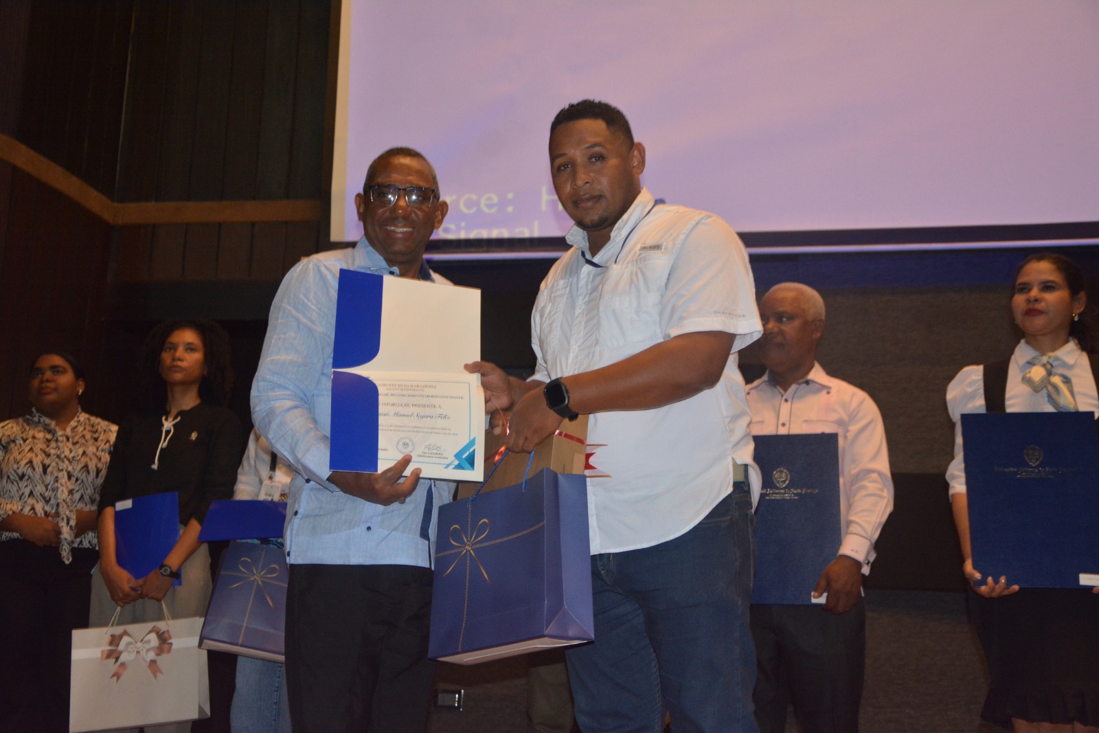 Asimismo, la academia reconoció como egresados sobresalientes a Omayra Y. Mañán, Yisel M. Urbáez, Osvaldo J. Santana, Ángel Peña y Roberto de León, resaltando su desempeño y compromiso con la formación profesional.